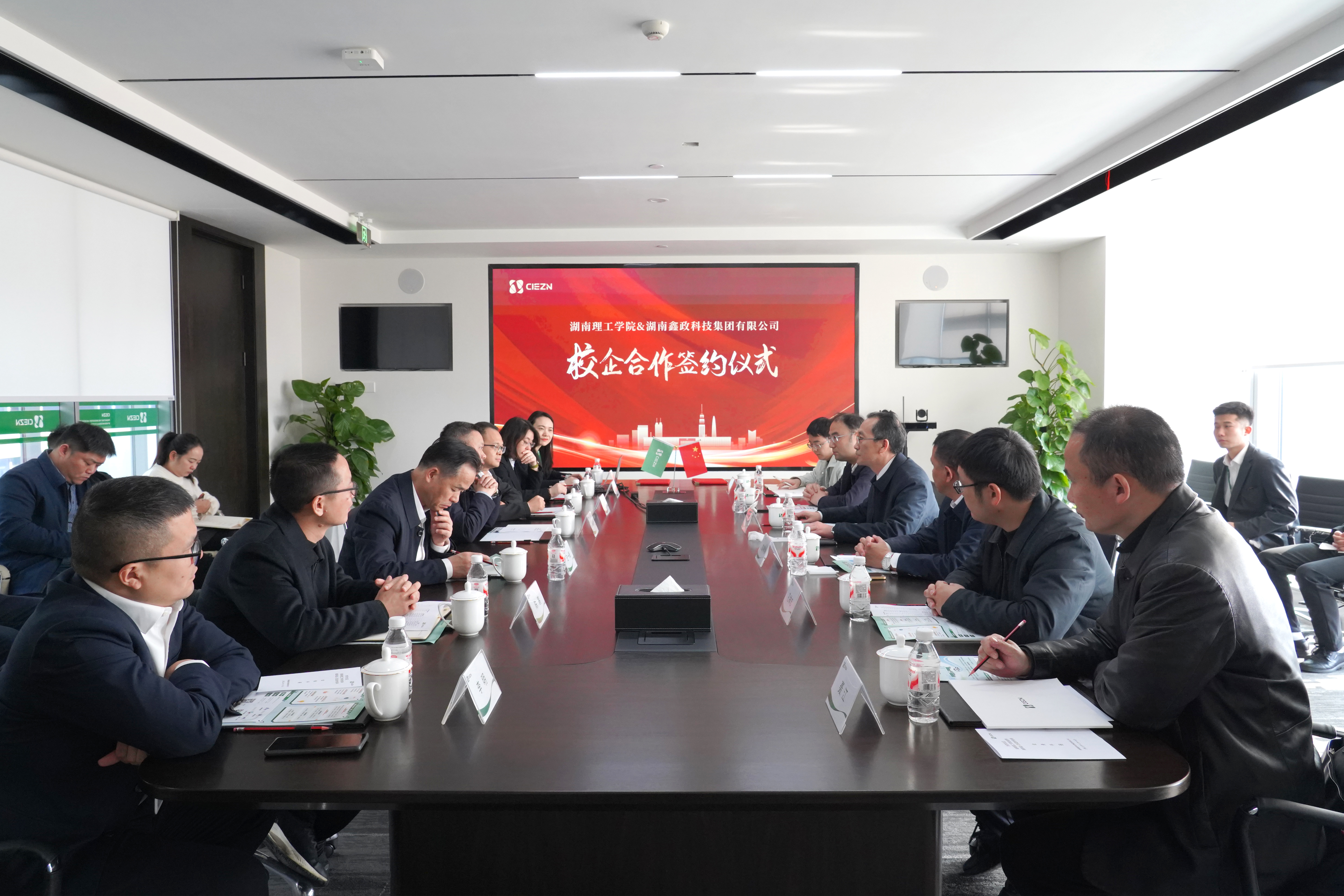 近日,湖南理工学院党委委员、副校长丁跃浇率队到访鑫政科技,围绕校企合作与产学研融合开展座谈交流,并举行战略合作签约暨实习教学基地授牌仪式。湘阴县领导徐春光、刘江波见证。