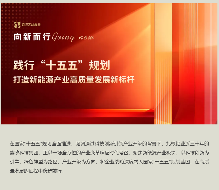 面向“十五五”,鑫政将继续通过绿色智造、科技创新与产业升级的协同推进,在新一轮产业变革中抢占先机。立足中国制造坚实基础,聚焦新材料、新工艺、新应用的系统突破,推动铝材料在新能源领域的创新引领,在实现“十五五”规划目标的进程中,展现从“中国制造”到“中国引领”的鑫政实践,为全球绿色转型贡献中国智慧与中国方案。
